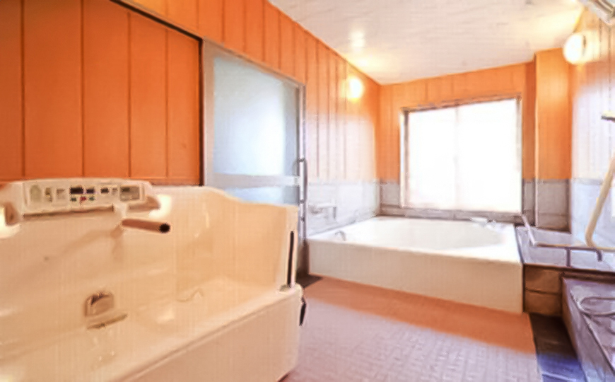 一度に2名が利用できる浴室。浴槽も大きく、ゆったりと浸かっていただき一日の疲れを癒してください。浴槽をまたぐ事が困難な方には、座ったまま入れる一人用のお風呂もあります。